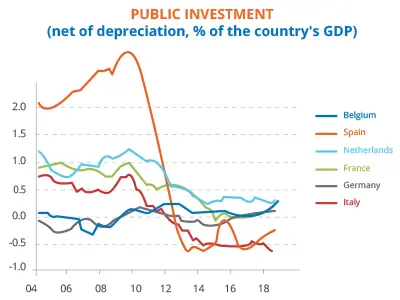 So is Europe really doomed to stagnation? Granted, the central bank has few tricks left up its sleeve to drive activity, although newly arrived President Christine Lagarde has stated “there's a bottom to everything, but we're not at that bottom at this point in time.” When it comes to fiscal policy, however, the boundaries are less obvious. In the past Europe has always been able to find room for manoeuvre when needed. As it happens, the need is more urgent than it might appear at first glance. First, because a stagnant economy is a vulnerable economy: any little shock can easily tip it over into recession. Next, because, until Europe has found its way back to sustainable growth, it will have a hard time regaining the support of the people. And, finally, because the euro zone is facing a serious investment deficit: since the early 2000s, capital expenditures have grown three times slower than in the United States and, in the last two decades, government investment net of amortisation has not grown at all!