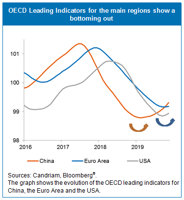 In Europe, like in the US and China, manufacturing PMIs are still contracting but some leading indicators confirm that the lowest point may be behind us. The bottoming out is also consistent with the improving news flow, witness the improving economic surprises.