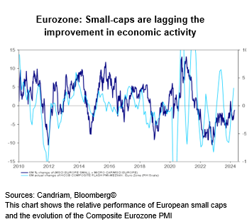 European small caps, in particular, have not followed the recent bounce in economic data and are among the most lagging cyclical assets. We are confident that manufacturing PMIs in the region have bottomed out this winter and further green shoots will be visible in upcoming reports.