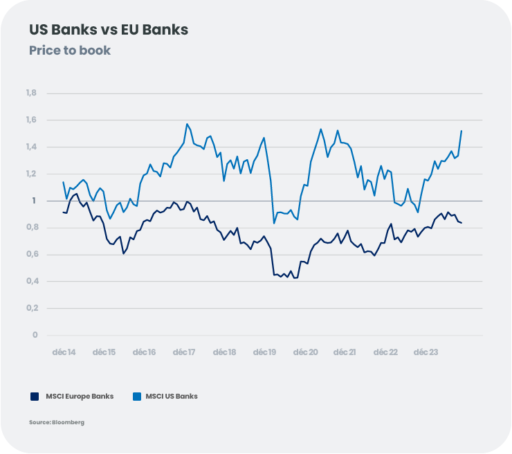 It remains to be seen how far regulators are willing to lighten regulation less than two years after the US regional banks crisis that triggered the fall of Credit Suisse. We expect the ECB to keep a strict stance creating an uneven playing field for European CIBs.