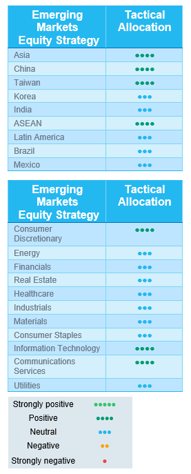 Regional preference: China > India – China is recovering on improving macro fundamentals and positive market sentiment, while India is showing signs of peaking, leading to investor rotation into China.