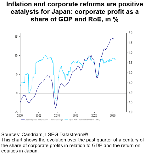 We remain alert to new uncertainties that could resurface, from political interference at the Fed to latent instability in Europe. Outside Japan, we remain comfortable with a balanced and well-diversified positioning, with some tilts towards mid-caps in the US and in Germany, while continuing to favour resilient themes such as Technology & AI, European Industrials and adding to Healthcare.