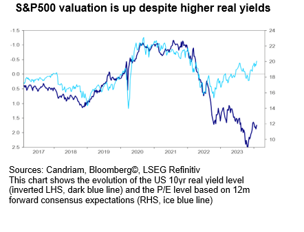 • The overall market valuation has disconnected from real yield levels in recent months, implying a less attractive buying level.