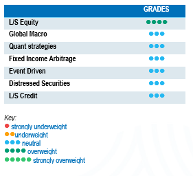On average, Event-driven managers were positive during the month, with positive contributions from both hard and soft catalyst strategies. The volume of new merger deals has seen a pickup in the US and in Europe, which is a positive sign for the strategy. The dynamic of improving corporate governance for Japanese stockholders has offered interesting deals to invest in. However, these opportunities remain accessible mainly via Asia-dedicated Event-driven strategies. An environment of higher for longer rates and significant maturity walls approaching in 2026 will be an important source of opportunities for special situations strategies.