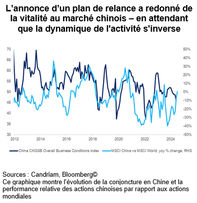 En Chine, les autorités ont annoncé un vaste plan de relance monétaire et budgétaire visant à contrer des pressions déflationnistes croissantes. La réunion du Bureau politique du Parti communiste chinois de septembre a souligné la nécessité de soutenir l'économie, ce qui a renforcé le sentiment d’urgence.
