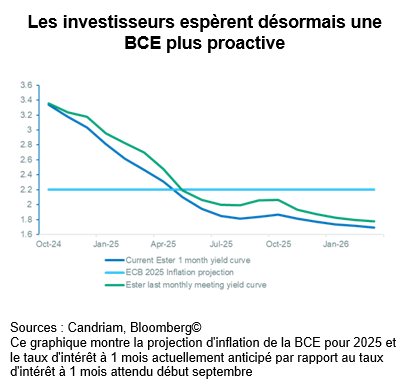 Ce contexte ouvre la voie à un nouvel assouplissement monétaire de la BCE, sachant que l'inflation globale des prix à la consommation a atteint 1,8 % en septembre, soit son plus bas niveau depuis avril 2021. Comme la lutte contre l'inflation sera quelque peu éclipsée par le combat contre la stagnation économique, les marchés tablent sur un taux d'intérêt à court terme inférieur au taux d'inflation au printemps prochain. Restrictive depuis un certain temps, la politique monétaire en zone euro pourrait alors redevenir expansionniste.