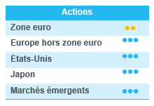 Corée du Sud : surpondération. Outre les opportunités thématiques, l'amélioration des perspectives pour le matériel technologique et les géants des semiconducteurs (Samsung Electronics, SK Hynix, etc.) favorisera le redressement de ce marché. Les valorisations sont plus raisonnables après la récente correction. Bien que le niveau élevé de la volatilité demeure préoccupant, nous relevons notre note.