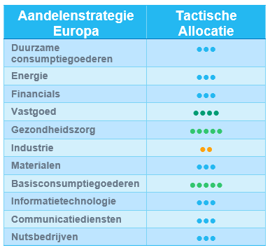 We handhaven ook onze positieve (+2) rating voor de sector Gezondheidszorg, die een aantrekkelijk risico-rendementsprofiel biedt dankzij redelijke waarderingen, een sterke zichtbaarheid van de kasstroom en verwachte winstgroei. Sommige bedrijven in gezondheidszorgapparatuur (zoals Carl Zeiss) zouden moeten profiteren van hun grote blootstelling aan China.