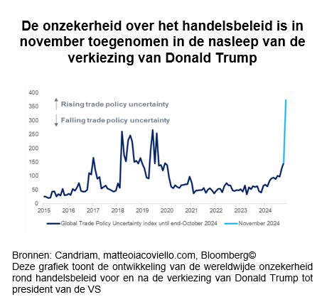 Naast de binnenlandse uitdagingen is de onzekerheid over de wereldhandel sterk toegenomen na de verkiezing van Donald Trump: we hebben de grootste sprong geregistreerd in maandelijkse cijfers sinds 1960!