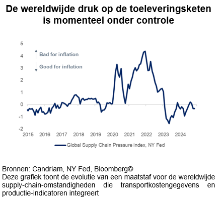 Vanuit het perspectief van obligatiebeleggers is het feit dat China een wereldwijde bron van desinflatie is, goed nieuws. Het is duidelijk dat de druk op de wereldwijde toeleveringsketen momenteel onder controle is, waarbij China een sleutelrol speelt. China speelt een belangrijke rol in de wereldwijde toeleveringsketen, omdat het een belangrijke producent is van intermediaire goederen en onderdelen die wereldwijd in productieprocessen worden gebruikt. Beleggers zijn gevoelig voor die maatstaf, omdat die aan de basis lag van de inflatiegolf aan het begin van dit decennium.