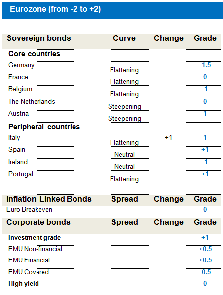 Core euro zone rates have seen a significant move downwards with German rates moving from -0.2 to -0.4 in a matter of two weeks, principally driven by the uncertainty surrounding the outbreak and the economic impact of the corona virus. Indeed, in spite of the QE strategic review and some better data, safe havens such as German rates did well. In the face of an increased allocation to peripheral rates, our overall allocation to euro zone rates is neutral, thanks to the underweight stance towards German rates, which are relatively expensive versus their core sovereign peers (France, Austria).