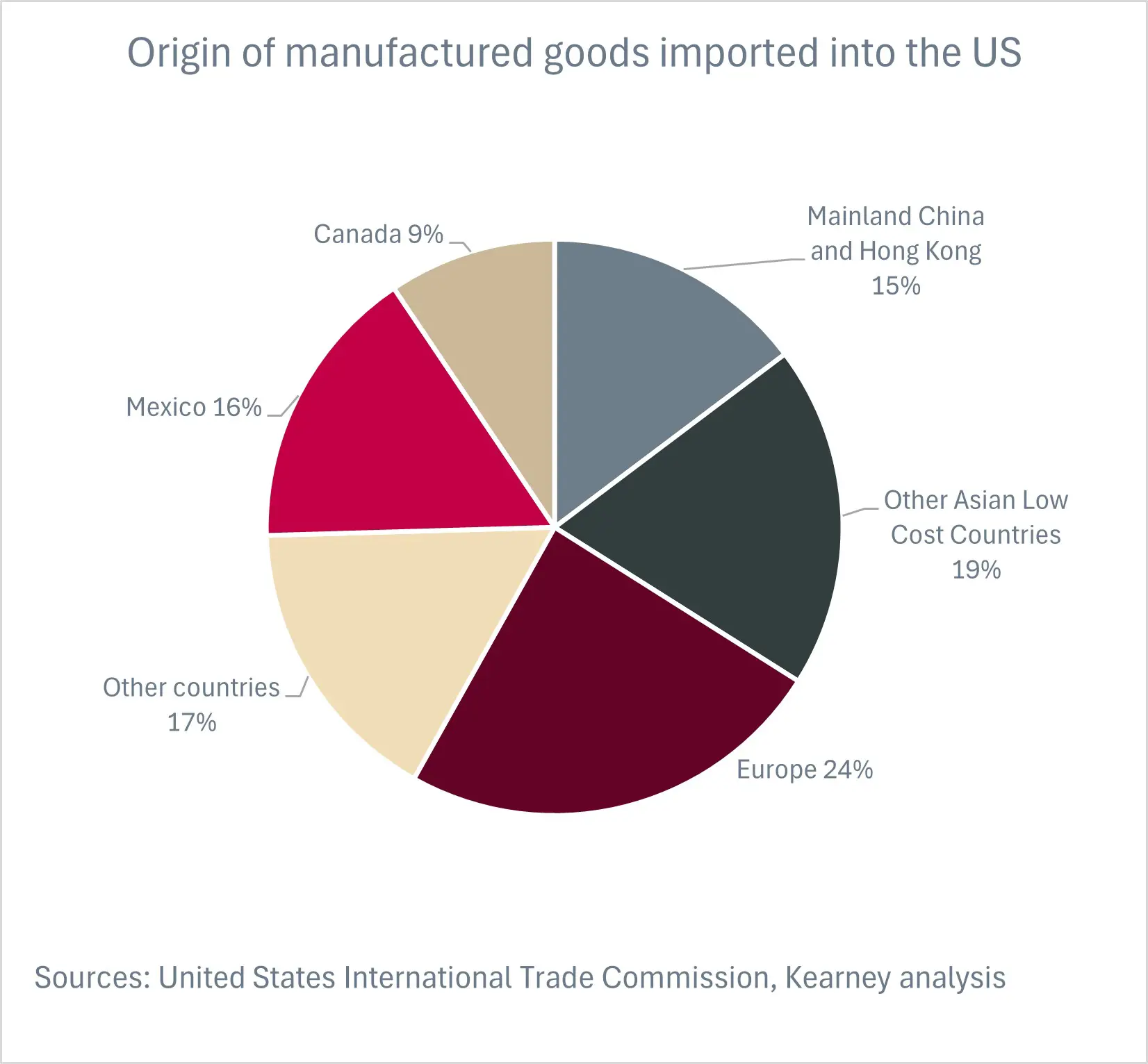 Over the past few decades, globalisation transformed national production systems. More than half of the parts used in automobiles sold in the US now originate from countries other than the United States or Canada [1]. In 2024, the US imported more manufactured goods than ever in the past decade, from many regions of the world.