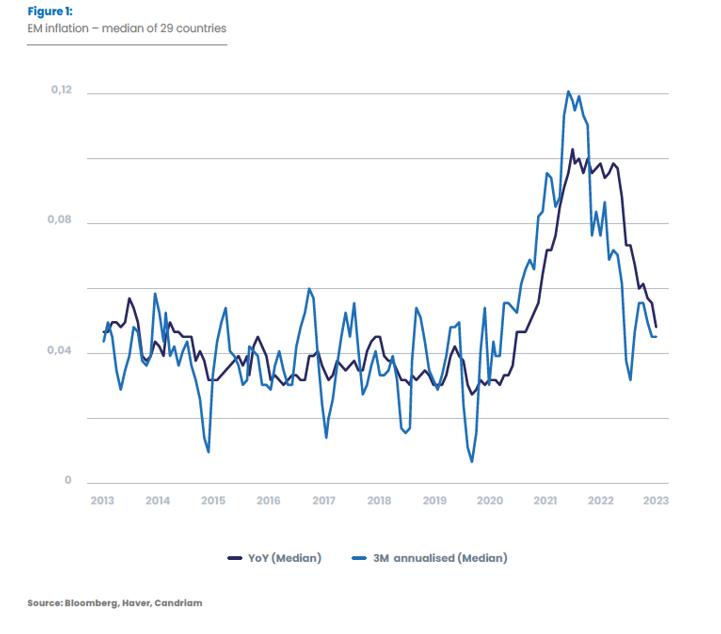 Indeed, it looks more benign for Emerging Market Debt …. But far from simple. Inflation is moderating, and this time around, the Emerging Markets are ahead of the Developed Nations – inflation is slowing sooner, and more rapidly, in EM countries than it is in the US or Eurozone.