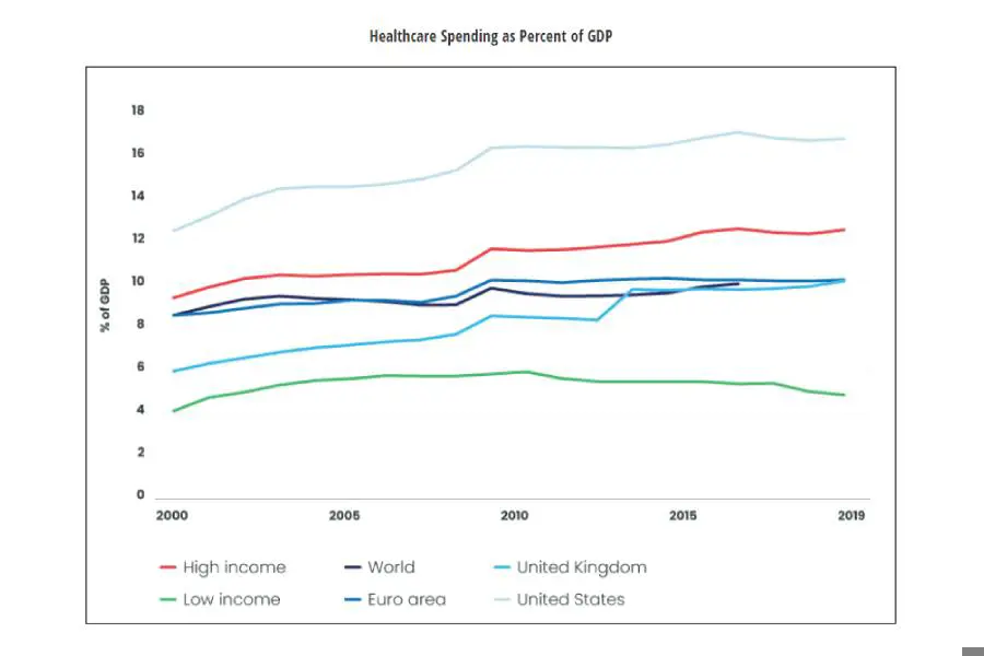 Aging populations and economic development are two of the powerful factors driving the take-up of Healthcare. While Covid is drawing attention today to public health, the global trend toward increased spending has been established for decades.