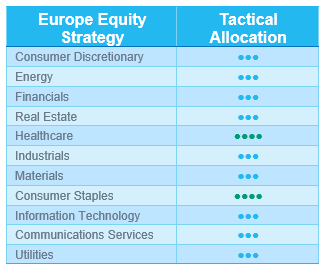 We have tactically upgraded the sector from neutral to +1, given the weight of Food & Beverage (6.5%) vs. Food Retail (0.8%) and also based on Beiersdorf’s strong results in HPC. Within the sector, our preferred industries remain Food & Beverage and Household & Personal Products, as both benefit from resilient margins.