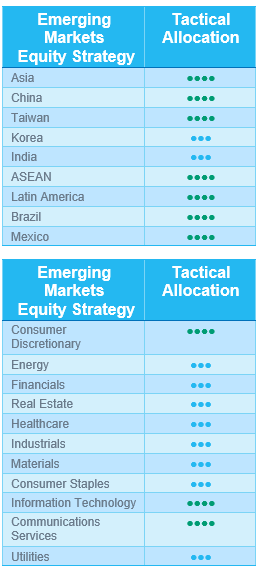 Emerging Europe: the region has seen a strong re-rating, with high beta exposure to European markets. Poland, Hungary and Czechia are leading, particularly in banking.