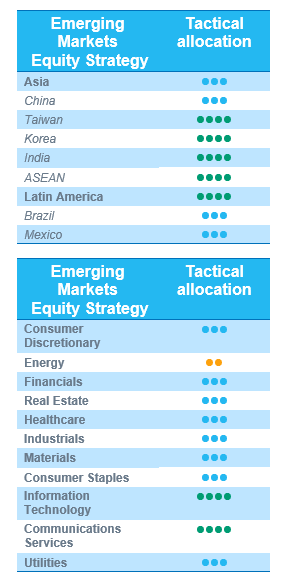 Korea – Overweight: Positive on Korean techs. We will monitor the elections and the potential impact.