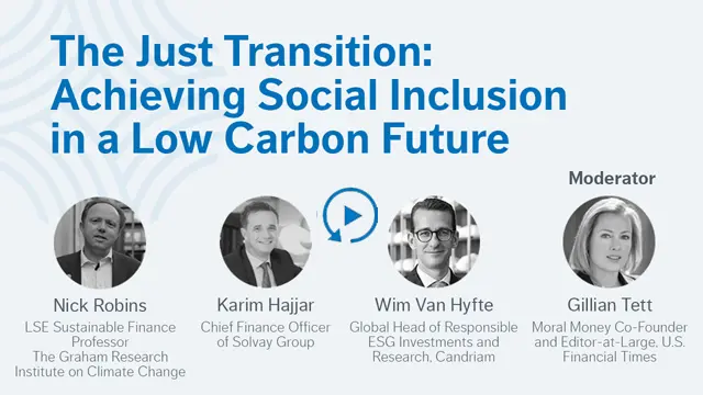 Launching the series, LSE Sustainable Finance Professor Nick Robins, Chief Finance Officer of Solvay Group Karim Hajjar, and CANDRIAM ESG Investment Specialist, Wim Van Hyfte will explore the social impact of transitioning to a low-carbon economy.