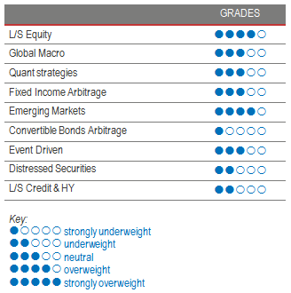 It was a strong month overall for long short equity strategies. During the year, market direction has been the most important factor behind managers’ performance. Net long stock-pickers outperformed market-neutral strategies. Low net funds found it more difficult to be positive during the month, due to strong sector rotations and heavy short stock covering. Average gross exposures have slightly increased recently but average net exposures remain significantly below last year’s highs. The current environment is not easy, due to economic uncertainty and rapid sentiment changes. However, strong dislocations always create opportunities for either long or short investments. This strategy offers a wide range of levers that can be used to benefit from industry restructurings and sector dispersion, from a long or short perspective.