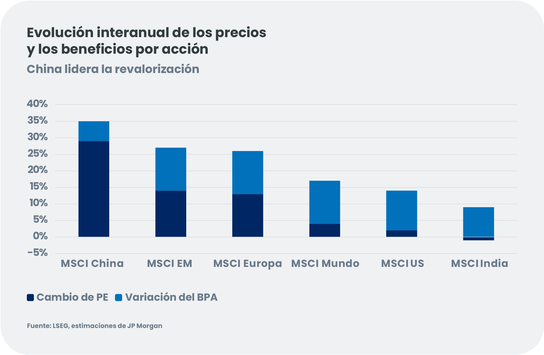 - Entradas de capital procedentes de la reasignación de inversiones residenciales, instituciones onshore e inversores globales hacia China y los mercados emergentes.