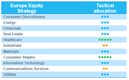 In this context, we are convinced that it continues to make sense to keep a balanced approach with defensive tilt. We haven’t made any structural changes to our sector allocation over the past few weeks as we still feel comfortable with our positive grade on the defensive health care sector (high visibility, benefits from increasing M&A activity and attractive valuation in an environment of slowing economic growth).