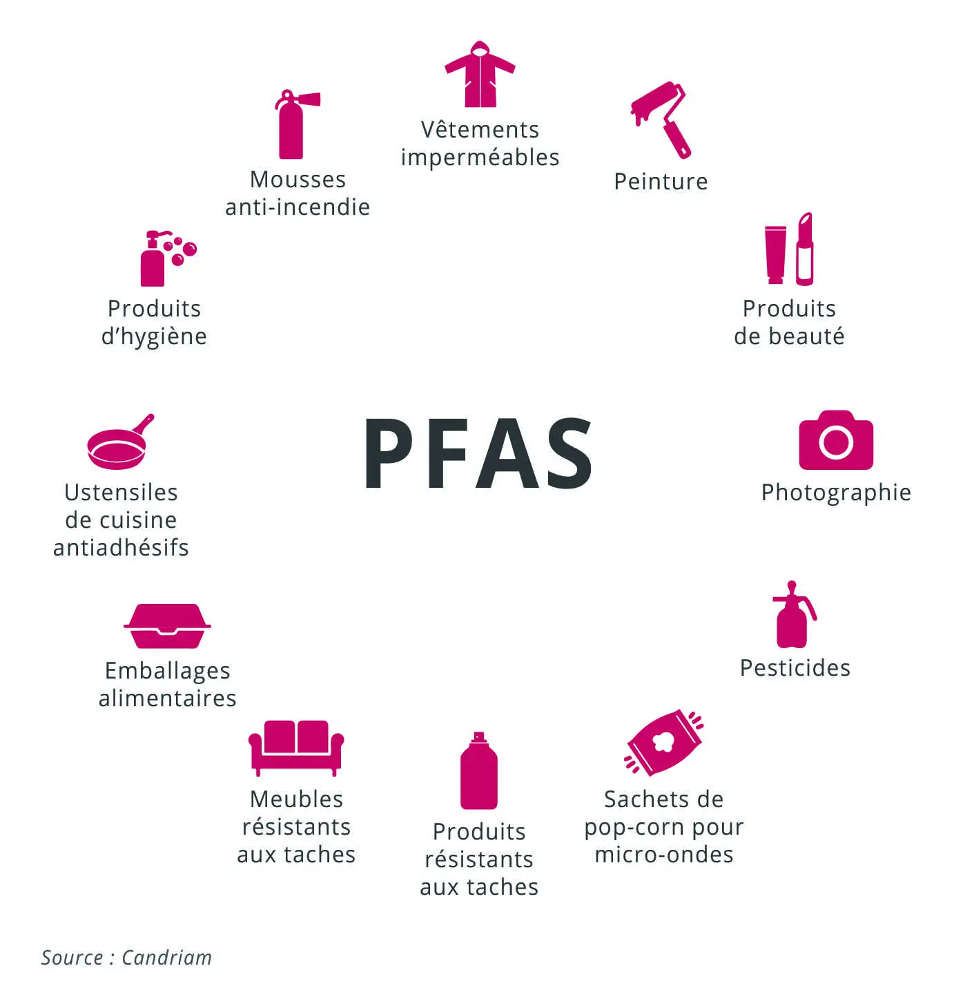 Les PFAS, ou substances per- et polyfluoroalkylées, communément appelées "produits chimiques éternels", sont largement utilisés depuis les années 1940 en raison de leurs propriétés uniques, telles que la résistance à l'eau et à l'huile. Ces produits chimiques se retrouvent dans des produits de tous les jours tels que les ustensiles de cuisine antiadhésifs, les vêtements résistants à l'eau, les cosmétiques, etc. Leur persistance dans l'environnement et leur quasi indestructibilité ont suscité de nombreuses inquiétudes pour l’environnement et la santé. Les PFAS sont potentiellement présents dans le sang de 95 à 100 % de la population américaine[1]! La plupart d’entre eux sont considérés comme modérément à hautement toxiquespour l'homme[2], car liés à des maladies thyroïdiennes, à des problèmes de fertilité et à divers cancers. Sur le plan environnemental, les PFAS s'accumulent dans les écosystèmes et les sources d'eau, affectant la biodiversité et présentant des risques pour la faune et la flore. Des grandes entreprises chimiques ont déjà été poursuivies en justice pour avoir contaminé des systèmes d'approvisionnement en eau.