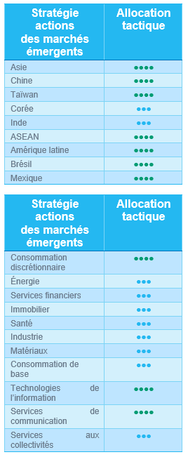 • Le Mexique est désormais surpondéré : son économie est étroitement liée à celle des États-Unis, les exportations représentant un tiers du PIB. La re-localisation reste un thème clé. Le marché a corrigé en avril dernier après la victoire électorale de la gauche, mais s'est stabilisé depuis. Le Mexique coopère avec les États-Unis sur les questions commerciales et frontalières, ce qui rend improbable un ralentissement important.