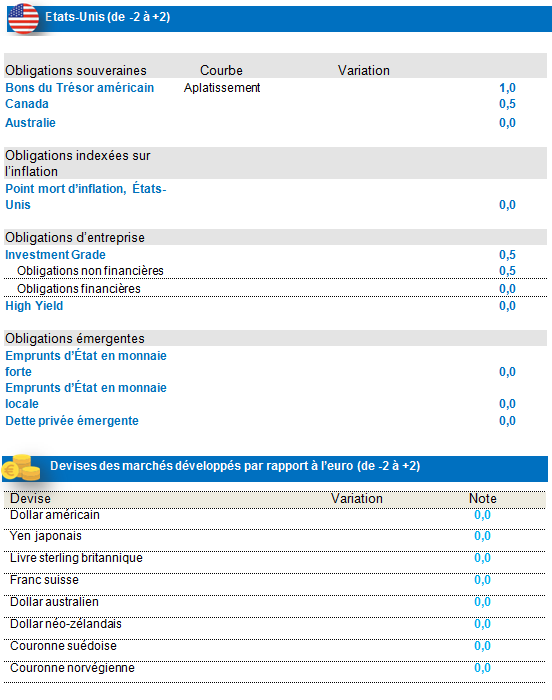 Opinion favorable à l’égard des taux américains mais neutre concernant les taux européens
