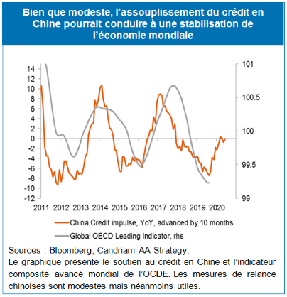 Des mesures monétaires et budgétaires cibléesDans les marchés émergents, et notamment en Chine, la tendance pourrait là aussi être en train de se renverser lentement. Par rapport aux années antérieures, les mesures monétaires et budgétaires prises par la banque centrale sont modestes, mais elles sont utiles et bien ciblées.