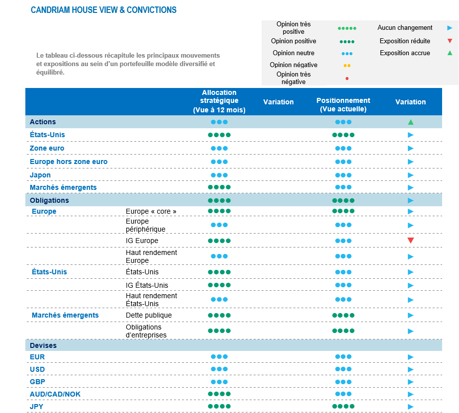 Renforcement de la cyclicité de notre allocation, conduisant à une légère surpondération des actions