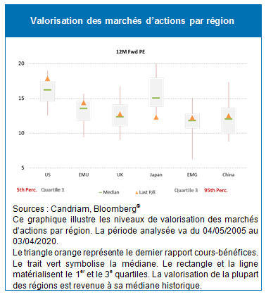 Le confinement en Chine et dans certains pays européens a été ou va être assoupli. Plusieurs pays préparent désormais une stratégie de déconfinement. Les mesures économiques et financières ont soutenu les marchés d’actions. Toutefois, la visibilité concernant l’évolution de l’épidémie aux États-Unis et le financement des mesures budgétaires en Europe demeure limitée.