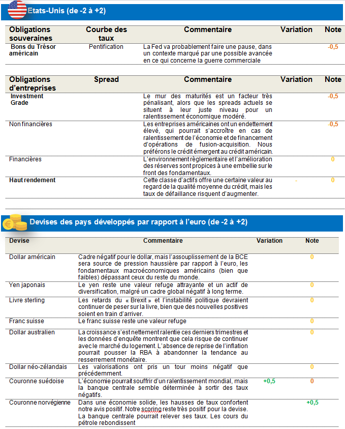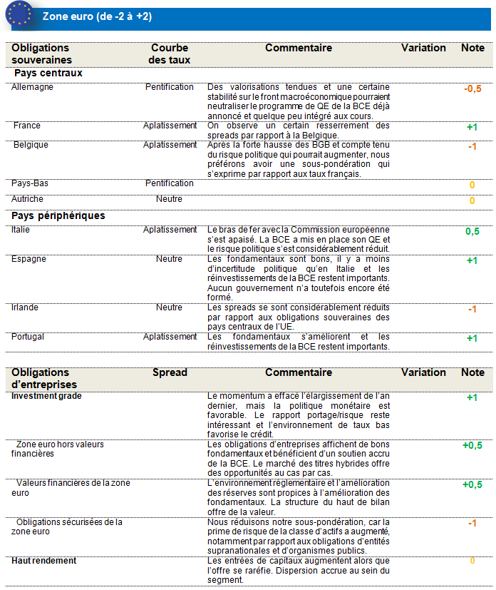 Sous-pondération tactique des taux américains et des pays centraux de la zone euro