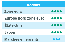 Brésil – Neutre : pénalisé par des taux américains durablement plus élevés, le Brésil affiche une faiblesse indéniable depuis quelque temps. Mais le cycle d'assouplissement est favorable et l’IPC conforme aux attentes. Les révisions du PIB sont positives et les valorisations domestiques attrayantes. Nous apprécions toujours le pays.
