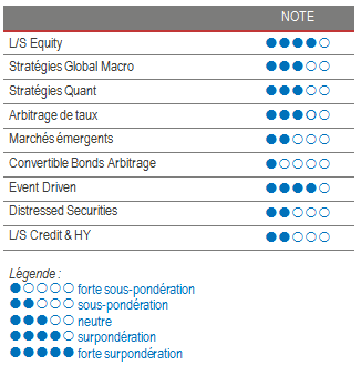 L’évolution des marchés en septembre a induit une certaine dispersion des performances entre les gérants Global Macro. Les gérants discrétionnaires ont dans l’ensemble surperformé les stratégies systématiques, bénéficiant d’une meilleure lecture du marché et de prises de bénéfices sur des positions tactiques dans un scénario économique qui évolue rapidement. Les positions longues dans le secteur de l’énergie et les positions courtes sur les taux souverains ont été les principaux moteurs de rendement sur le mois. Même si les fonds Global Macro peuvent parfois pâtir d’un environnement de marché « bruyant », nous pensons qu’ils pourraient constituer une opportunité de placement intéressante pour les investisseurs cherchant à profiter des mouvements de réévaluation des actifs en cas de hausse persistante du marché de l’inflation. Nous continuons de privilégier les gérants opportunistes discrétionnaires, qui peuvent s’appuyer sur leurs compétences analytiques et leur expérience pour générer des bénéfices à partir d’opportunités sélectives dans le monde entier.