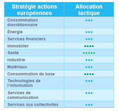 - Soins de santé (ramenés à Neutre): si les perspectives à long terme demeurent positives, nous avons adopté une position neutre sur les soins de santé en raison de notre positionnement plus cyclique et de taux à long terme plus élevés.