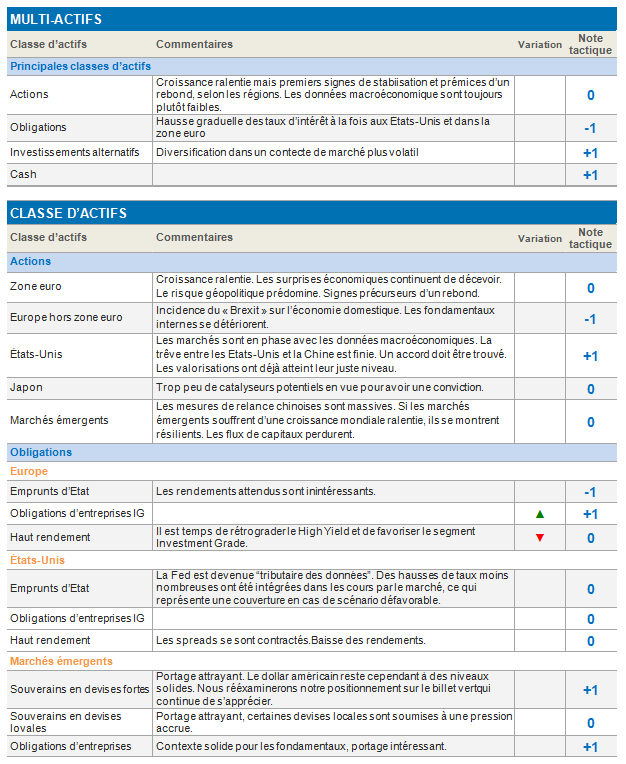 Notre recommandation tactique sur les obligations à haut rendement devient plus prudente. Nous dégradons cette classe d’actifs et passons de positif à neutre.
