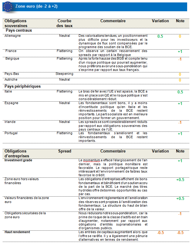 Position neutre sur les taux aux États-Unis et dans les pays centraux de la zone euro