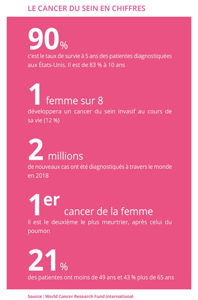 La recherche offre désormais une meilleure compréhension de la signature génétique des cancers. C'est la porte de la médecine personnalisée et du développement de médicaments très spécialisés. L'Herceptin® du laboratoire Roche a été le premier marqueur de cette révolution, en transformant le pronostic du cancer du sein HER2 positif, qui est l'un des plus agressifs. Il n'est cependant efficace que chez les 20 % de patientes qui expriment cette mutation. Mais pour les autres aussi, de nouvelles alternatives remplacent, ou complètent, progressivement la chimiothérapie. Récemment, les autorités américaines ont approuvé un nouveau médicament contre le cancer dit "triple négatif", qui est l'un des plus complexes à traiter. Les cancers héréditaires BRCA sont également mieux pris en charge, tout comme ceux plus avancés à un stade métastasique, ou qui ne répondent plus au traitement standard. Des recherches prometteuses sont aussi menées en immunothérapie, avec l'objectif de stimuler le système immunitaire pour mieux comprendre la tumeur.
