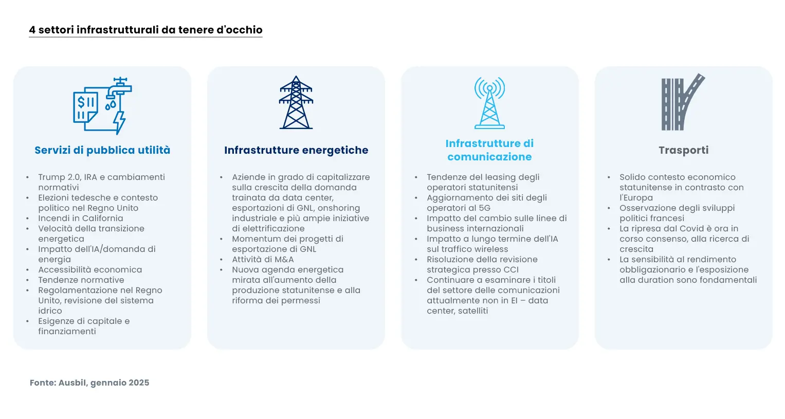”Settori come i servizi idrici regolamentati, i servizi elettrici e le torri di telefonia mobile offrono un potenziale di rialzo paragonabile a quello osservato durante la pandemia