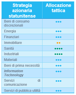 Le aspettative di crescita continuano a essere trainate principalmente da information technology, sanità e industriali. In questo contesto di attese sugli utili lievemente riviste e recente debolezza del mercato, il rapporto prezzo/utili forward a 12 mesi del S&P 500 è sceso a 20,7, mantenendosi tuttavia al di sopra delle medie quinquennale e decennale.