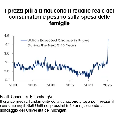 • Prezzi più alti: questi dazi sono per loro natura inflazionistici, in particolare per i settori caratterizzati da forti importazioni. Nei settori farmaceutico, automobilistico e metallurgico i costi dei fattori produttivi sono in ascesa, riducendo la redditività delle imprese e il potere d'acquisto delle famiglie.