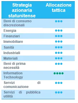 La nostra visione settoriale non ha subito modifiche. Siamo positivi sul settore tecnologico, ulteriormente favorito dallo sviluppo dell'intelligenza artificiale.