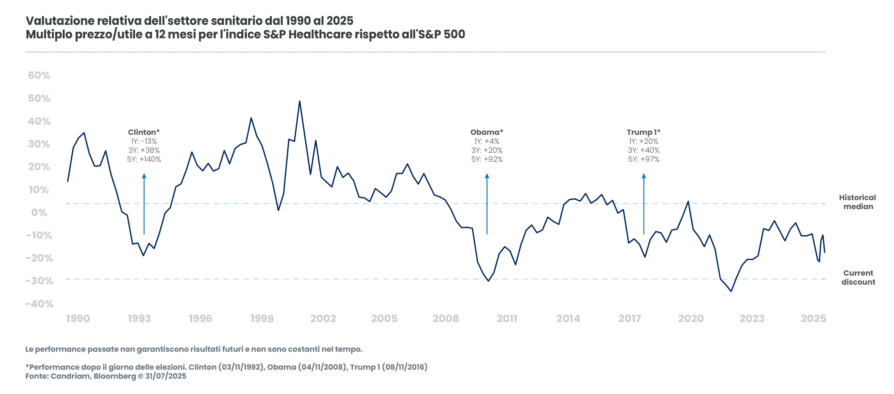Oggi, l'invecchiamento della popolazione e l'aumento delle esigenze di assistenza sanitaria cronica, uniti a un rapido ciclo di innovazione tecnologica, stanno ampliando le opportunità di investimento del settore sanitario, anche se le valutazioni si attestano sui minimi relativi degli ultimi decenni. Questa combinazione di domanda duratura e crescita sottostimata crea un raro punto di ingresso per gli investitori a lungo termine.