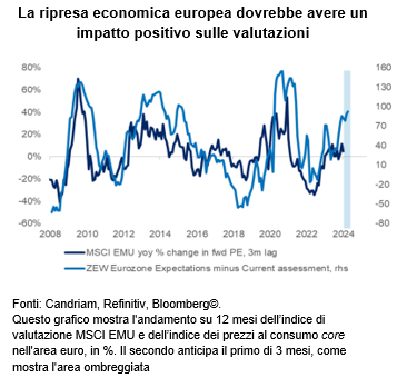 Le valutazioni sono interessanti nei mercati britannici, con un potenziale di espansione dei multipli, mentre la Banca d'Inghilterra dovrebbe iniziare a ridurre i tassi quest'estate, seguendo la BCE.