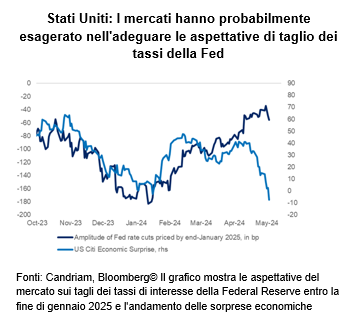 Negli Stati Uniti, i rendimenti delle obbligazioni a 10 anni sono passati dal 5,0% di metà ottobre al 3,8% alla fine del 2023, per poi risalire al 4,7% in aprile. Abbiamo raggiunto l'interessante punto di ingresso che aspettavamo e abbiamo quindi aumentato la nostra duration anche in questa regione.