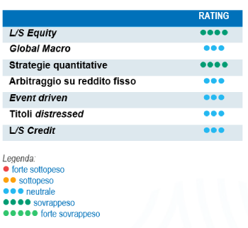Le strategie quantitative si sono comportate bene nel mese. I modelli trend following hanno generato rendimenti positivi, con i migliori contributi giunti dalle posizioni di trading in valute e commodity. Lo scorso mese anche i programmi quantitativi multi-strategia si sono distinti. Le strategie sistematiche hanno continuato a offrire valore ai portafogli, conseguendo solide performance e assicurando diversificazione rispetto alle tradizionali classi di asset.