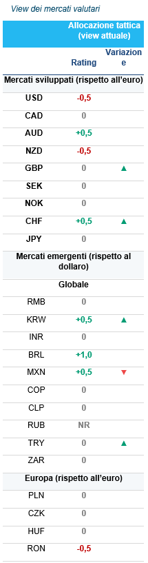 - Allocazione tattica: 5 gradi da 2 (fortemente positivo) a -2 (fortemente negativo)