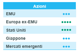 Cina - Neutrale: incertezze riguardo al rischio del settore immobiliare, al rallentamento economico e ai fattori geopolitici. Il mercato è guidato da fattori macro, ma i piccoli stimoli di volta in volta introdotti dal governo non sono sufficienti. Le valutazioni restano interessanti e occorre selettività negli investimenti.