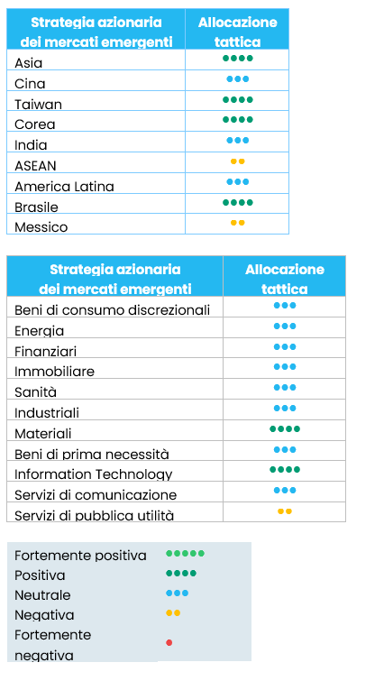 Tra le regioni, abbiamo rivisto al rialzo la Corea, da neutrale a sovrappeso, e declassato la Cina da sovrappeso a neutrale. Non si tratta di una valutazione negativa dei fondamentali cinesi, bensì di una riallocazione verso opportunità più convincenti, dove la visibilità degli utili e la durata del ciclo sono migliori, soprattutto nel settore tecnologico coreano. Nel frattempo, restiamo costruttivi sul settore tecnologico cinese.