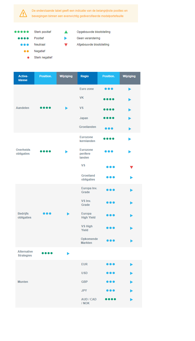 - Licht overwogen VS, VK en Japan, neutraal Opkomende markten.